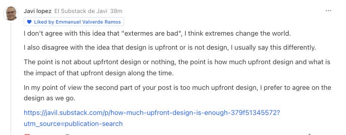 https://javil.substack.com/p/how-much-upfront-design-is-enough-379f51345572?utm_source=publication-search