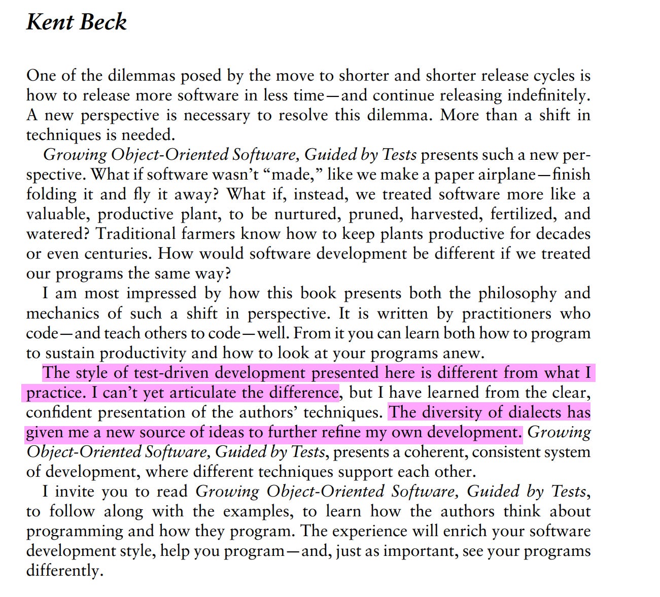 Freeman, Steve; Pryce, Nat. Growing Object-Oriented Software, Guided by Tests.