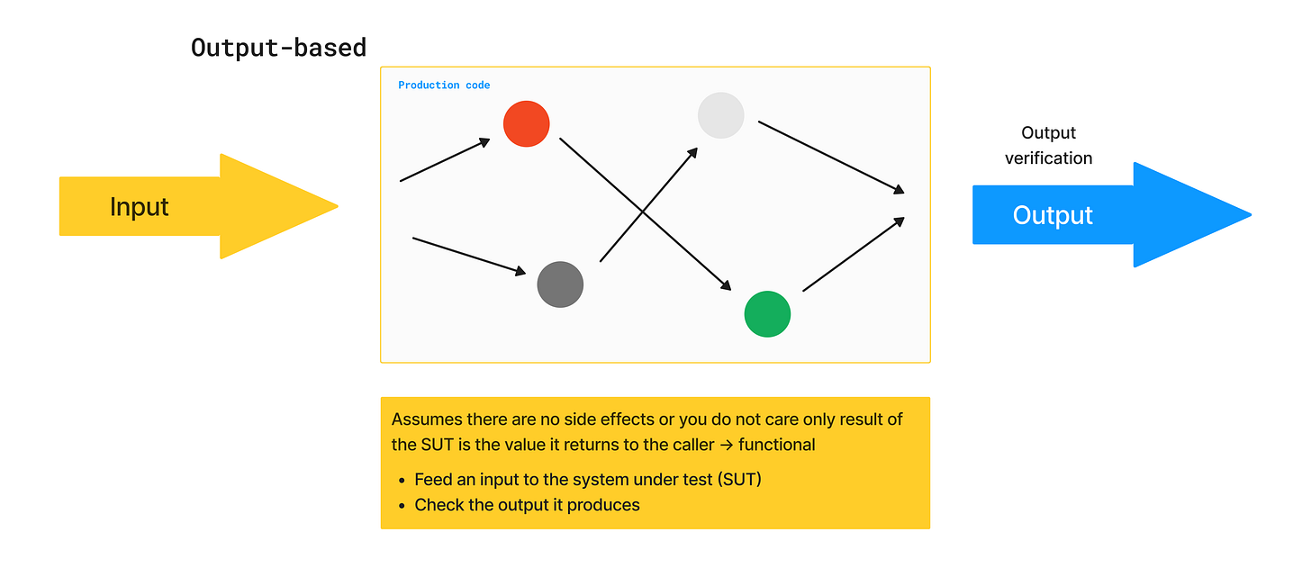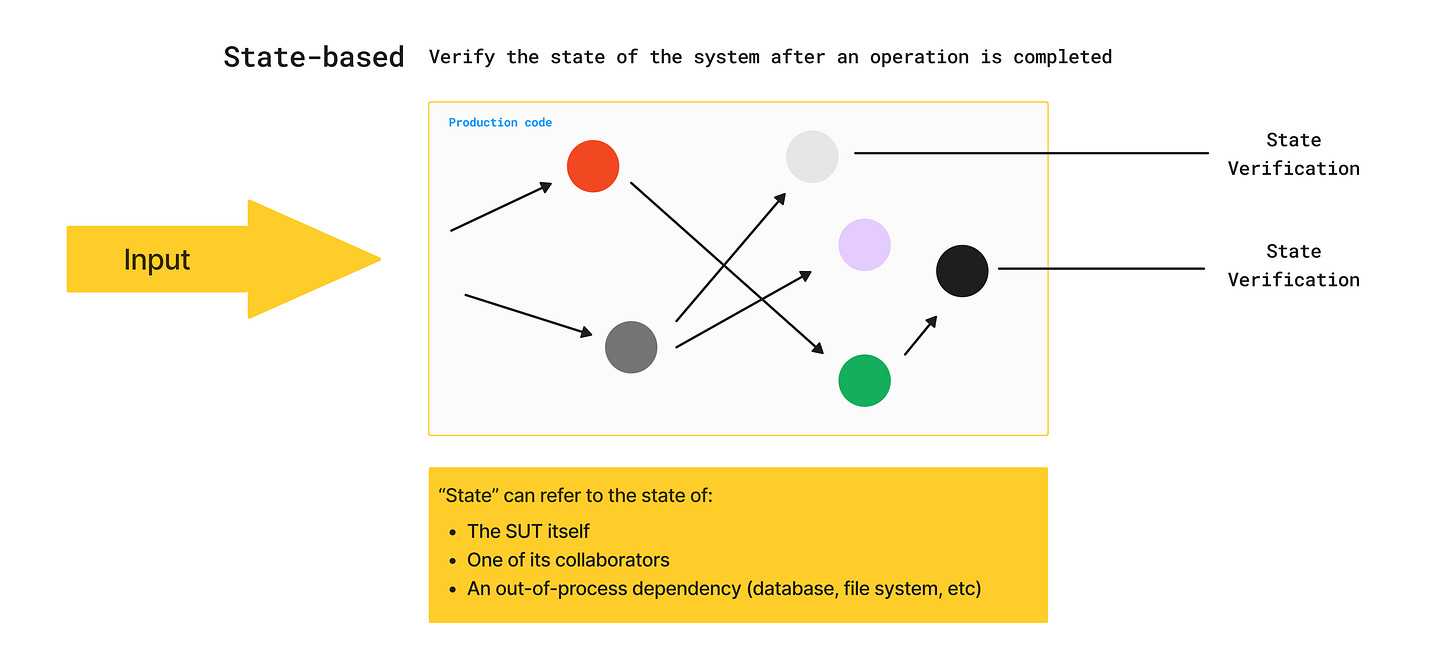“Tests are normally state-based” — or also, output-based. There's nothing inherently wrong with that.